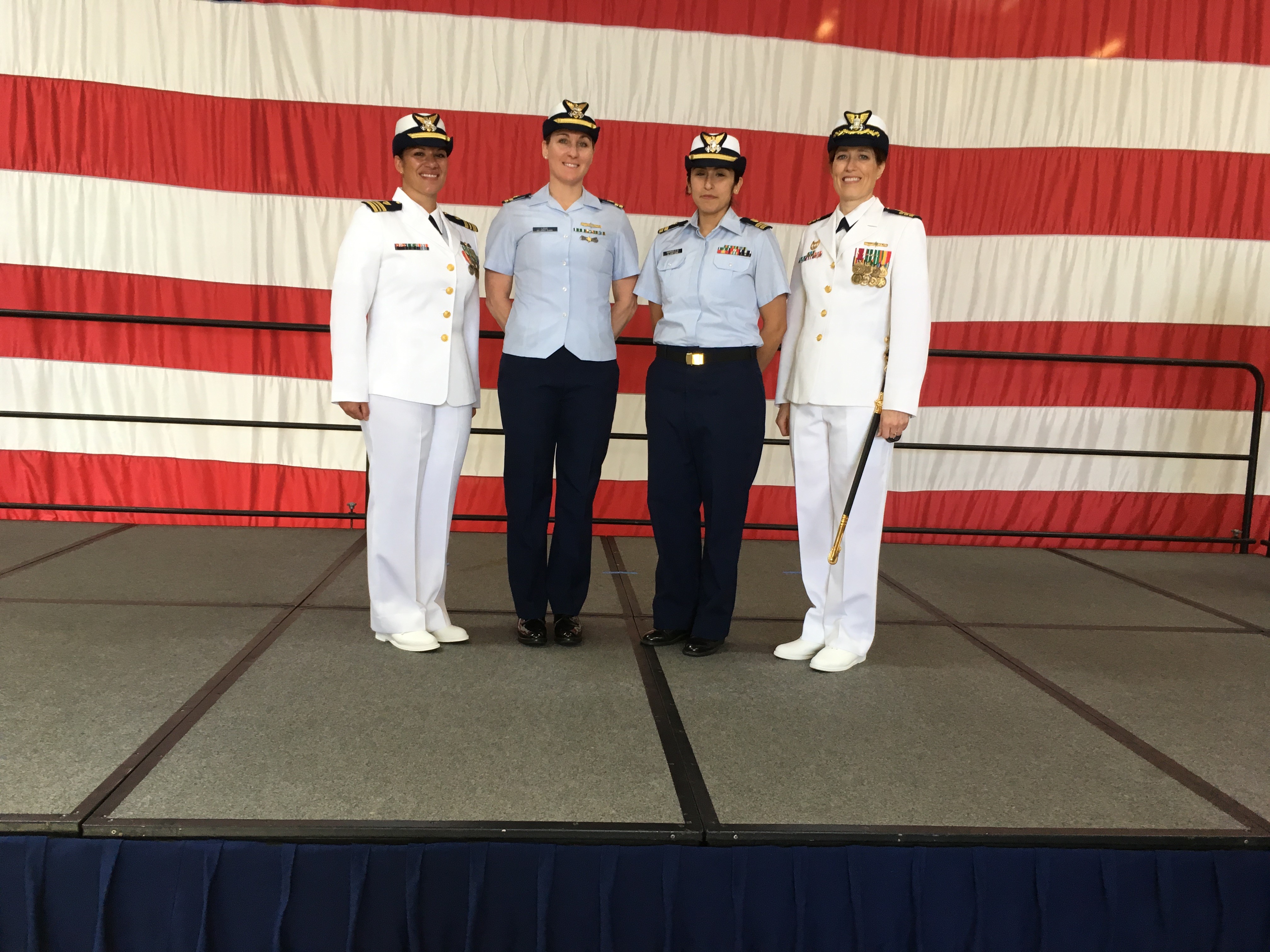 From left to right: LCDR Jessica Thornton, XO, LT Lucy Love, OPS, LT Samantha Marmolejo, AOPS, CDR JoAnne Hanson, CO