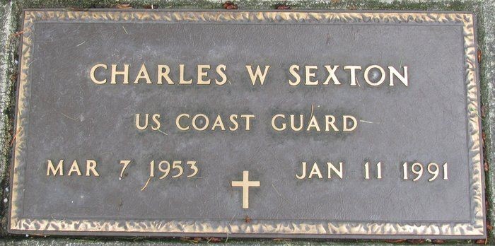 Grave marker for Coast Guard hero Charles Sexton located at a cemetery in Lakewood, Washington. (Findagrave.com)